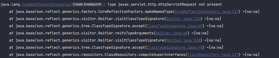 java.lang.TypeNotPresentException: Type javax.servlet.http.HttpServletRequest not present
